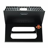 Picnic Time NCAA-PCX, Great for tailgating, days at the beach, picnics, or camping, this folding portable charcoal X-Grill from Picnic Time features a compact, easy to assemble, slim line design in durable electro-plated iron. The X-Grill includes a chrome-plated tri-fold cooking grate that measures 18-1/2 by 11 inches, plus a charcoal grate, both of which store conveniently inside the folded grill. A durable 600D polyester carrying tote with strap that is included allows for easy transport, and is graced with your favorite team's logo. With the X-Grill, you can take the BBQ wherever you want to go. (Read More)